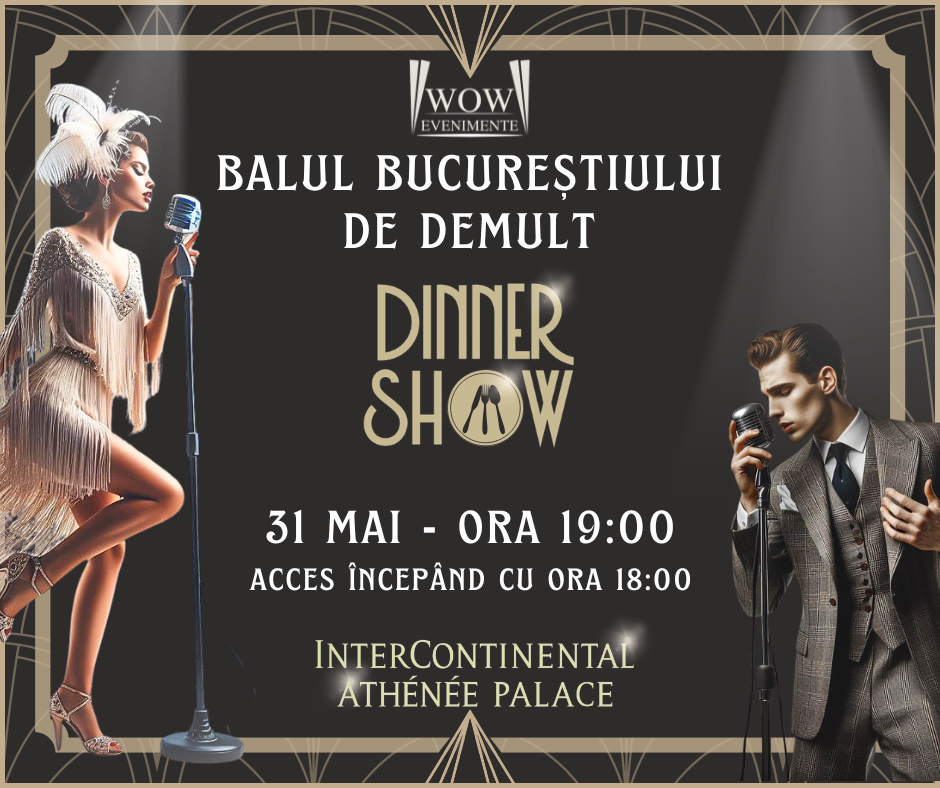 Îmbinând farmecul conceptului „Dinner and a Show”, vă propunem o seară în care veți fi încântați de un eveniment artistic spectaculos.