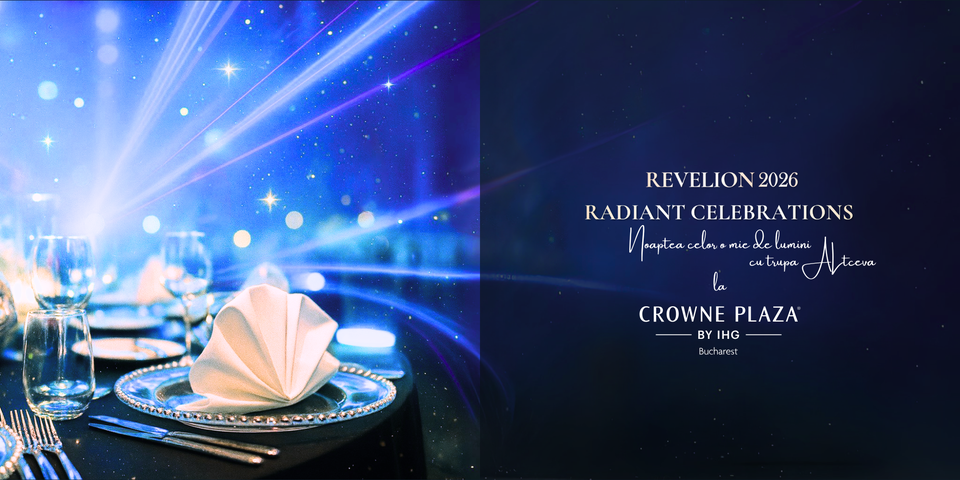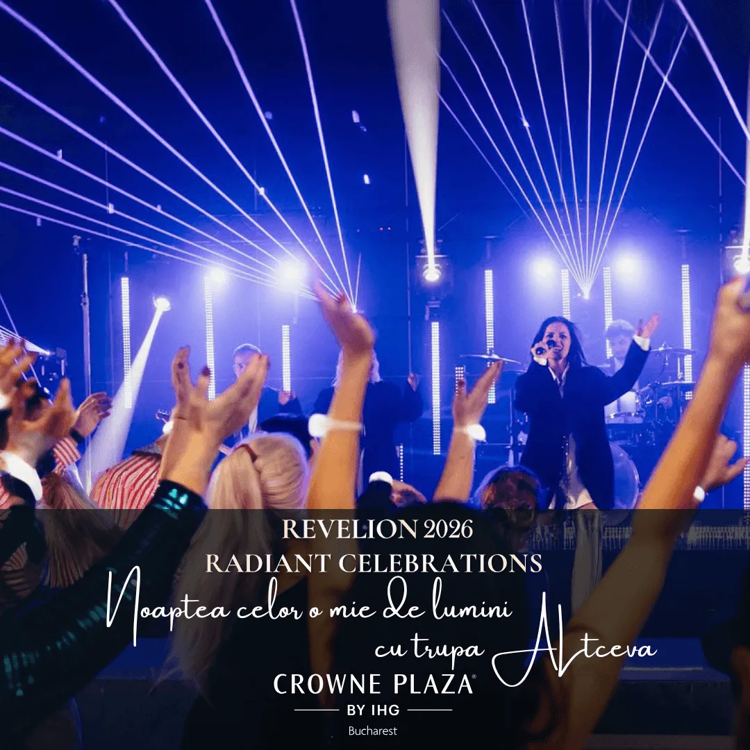La Crowne Plaza București magia nopții de Revelion va prinde viață cu o petrecere spectaculoasă. În cadrul conceptului „Noaptea celor 1000 de lumini”, vei experimenta o atmosferă definita de strălucirea luminilor laser și muzică care te va ține pe ringul de dans toată noaptea. Lăsa-ți-vă cuprinși de atmosfera energica, surprizele pregătite și momentele de neuitat create de trupa Altceva, care va asigura distracția pe tot parcursul serii.